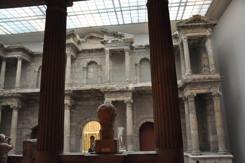 Nell’antichità, la città di Mileto era una delle città greche più importanti e ricche sulla costa dell’Asia minore. La porta del mercato (vedi la foto sopra) fu costruita intorno al 180 a.C. e fu distrutta durante il medioevo, ma nel 1903 furono scoperte le sue rovine durante gli scavi di due archeologi tedeschi (Theodor Wiegand e Hubert Knackfuß). I pezzi furono portati in Germania, con un accordo simile a quello fatto per l’altare di Pergamo. La ricostruzione nel museo di Pergamo ha aggiunto le parti mancanti della porta, non trovate durante gli scavi.