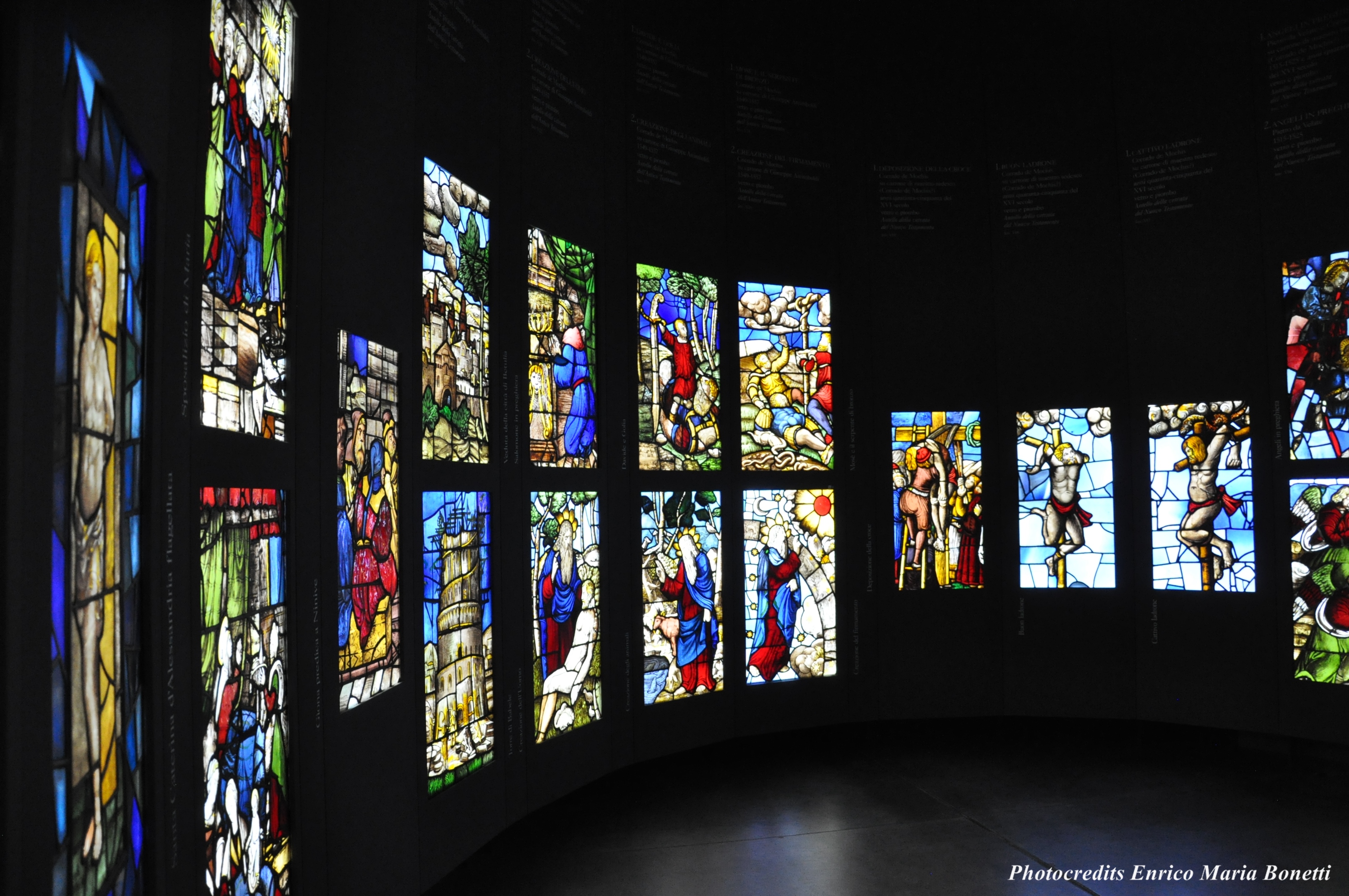 Il tragitto, preceduto dalle due sale dedicate al tesoro del Duomo è studiato per raccontare al visitatore la storia della costruzione della cattedrale, dall’epoca viscontea fino al XX secolo, giocando con lo spazio e con l’illuminazione per cui in qualsiasi punto all’interno delle sale si ha una visione diversa e ravvicinata del particolare.