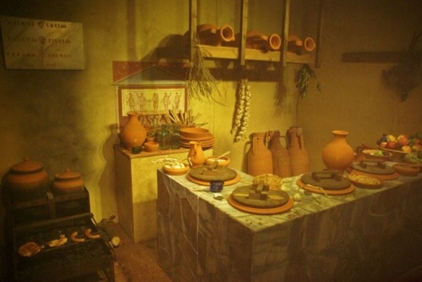 Dai reperti di cibo carbonizzato infatti si comprende che l’alimentazione dei romani era a base di verdura, frutta e di pane. La frutta e la verdura venivano vendute in gran quantità nelle botteghe insieme all’olio, tanto che Plauto chiamava i romani “mangiatori di erbe”.
