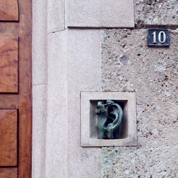 Un esempio a Milano è la Cà dell’Oreggia che significa “casa dell’orecchio” in riferimento al citofono in bronzo fuso sistemato a fianco del portone d’ingresso in Via Gabrio Serbelloni 10.
