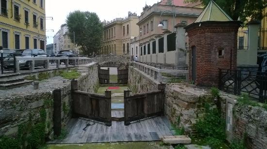 Oggi si vedono, In fondo a via San Marco , le grandi porte lignee coi possenti battenti che bloccavano il passaggio dell’acqua sono quelle progettate da Leonardo da Vinci e disegnate nel “Codice Atlantico” dove il tomo originale conservato nella Biblioteca Ambrosiana, si può vedere e addirittura sfogliare.