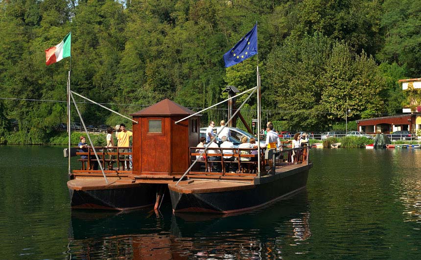 Imbersago -ricostruzione del traghetto disegnato da Leonardo da Vinci